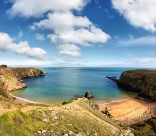 On parvient à cette minuscule étendue de sable du Pouliguen (44), cernée de falaises granitiques, par un escalier taillé dans les rochers, dont l’accès peut d’ailleurs se révéler coupé à marée haute. Le joli petit nom du site vient de son sable blanc bordé par une eau turquoise, qui transporte instantanément sur une île exotique ! Baignade non surveillée.