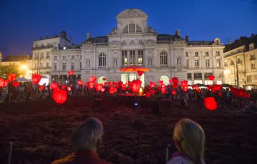 Lors de cette édition, l’artiste angevin Frédéric Bourreau fit germer, sur la place du Ralliement, une formidable colonie de coquelicots. Articulées, les fleurs rouges semblaient respirer au rythme de la musique.