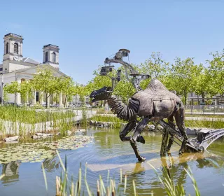Géniale inspiration que celle du scénographe et metteur en scène nantais François Delarozière, qui a logé une véritable ménagerie mécanique dans les bassins de la place Napoléon. Hippopotame, crocodile, hibou, perche du Nil, dromadaire ou flamants roses se voient chacun relié à un poste de commande qui permet au public d’animer chaque partie de l’animal, pour un rendu (presque) plus vrai que nature. Les enfants adorent !