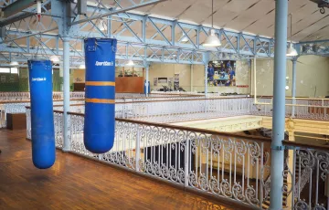 Cet étonnant gymnase déploie sur trois niveaux un cadre époustouflant, entre balustrades en fer forgé, grande verrière et parquet d’un autre siècle. Les murs hébergeaient au début du XXème siècle le grand magasin À Réaumur, spécialisé dans l’habillement. Les locaux se verront convertis en salle de sport durant les années 60, tout en conservant leur cachet si particulier. Les passants sont autorisés à pénétrer les lieux pour jeter un œil, en évitant bien évidemment de troubler les cours de boxe ou de gym !